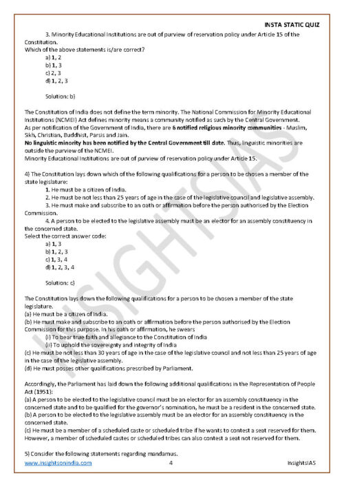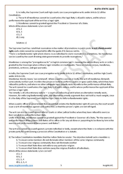 Insights IAS Insta Static Quiz Monthly Compilation June 2020 Printed Notes English Medium