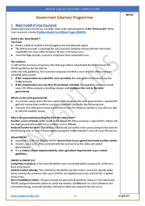 Insights Ias Pt Exclusive Part-2 Agriculture 2021 Printed Notes English Medium