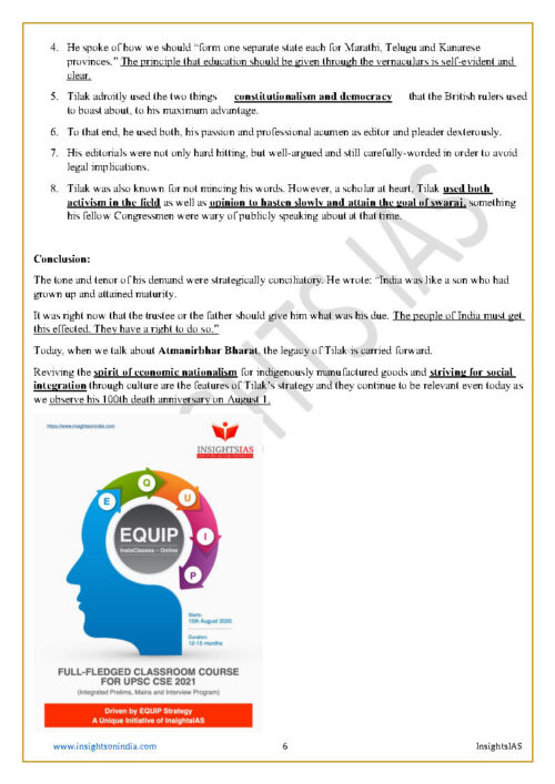Insightsonindia IAS Monthly Editorial Printed Notes August 2020 English Medium