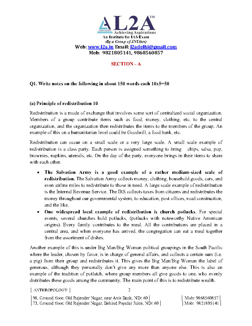 L2A Anthropology Optional Printed Notes Test Series 01 To 08 2022 English Medium