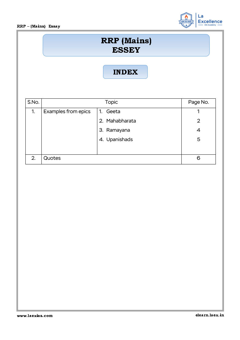 La Excellence Ias RRP (Raipid Revision Program Mains) Prelims Essay English Medium Printed Notes 2023