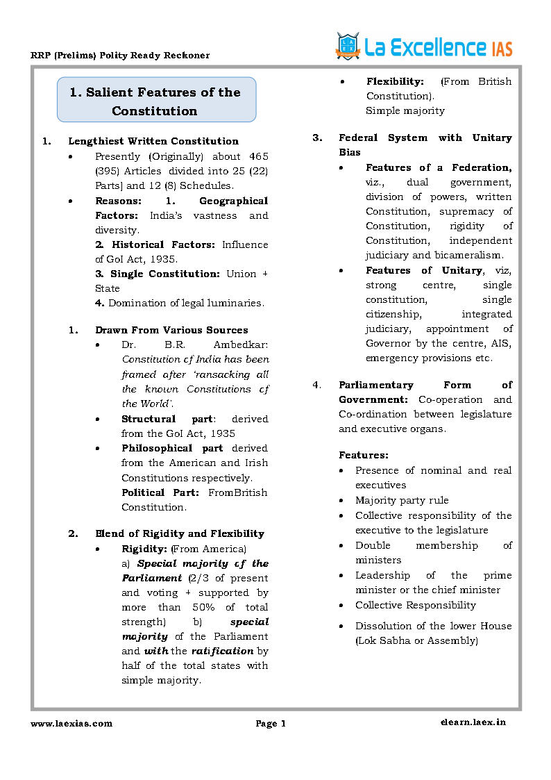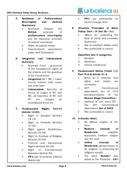 La Excellence-RRP Prelims Ready Reckoner Polity
