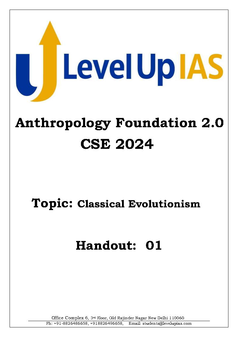 LevelUP Ias Anthropology Foundations 2.0 CSE -2024 Handouts 01 To 103 English Medium