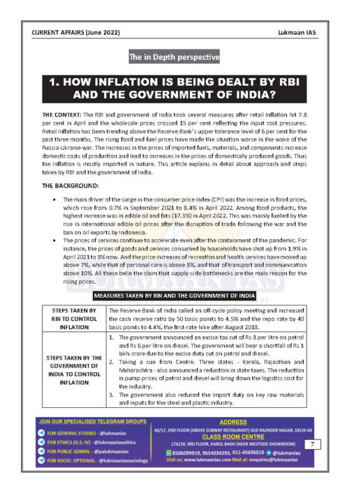 Lukmaan Ias A Monthly Current Affairs Magazine For Civil Services The Perspective Volume-10 June 2022 English Medium
