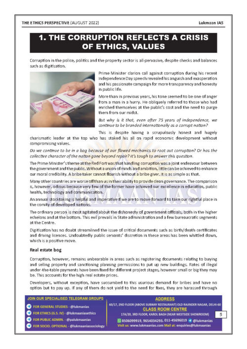 1. THE CORRUPTION REFLECTS A CRISIS OF ETHICS, VALUES