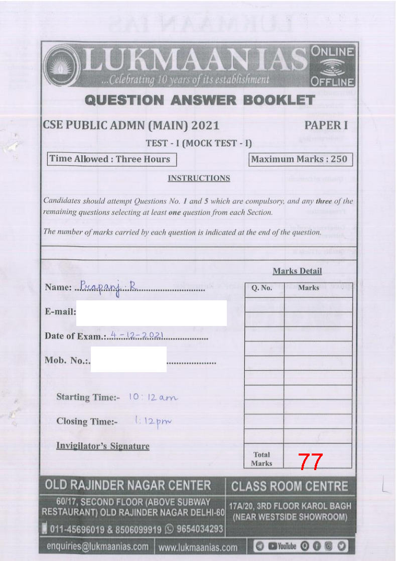 Lukmaan IAS Topper Copy Public Administration By Prapanj R (Air 523) English Medium 2021