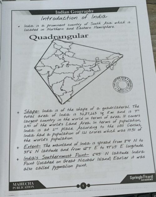 Mahecha Publication Ras (Rajasthan) Foundation Indian Geography Springboard Academy New Edition 2023 Class Notes Original Book English Medium