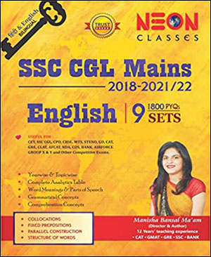 Neon Classes SSC CGL Mains (2018-2021/22) By Manisha Bansal Ma'am 9 Sets 1800 PYQs Yearwise And Topicwise Complete Solutions And Analytics Bilingual
