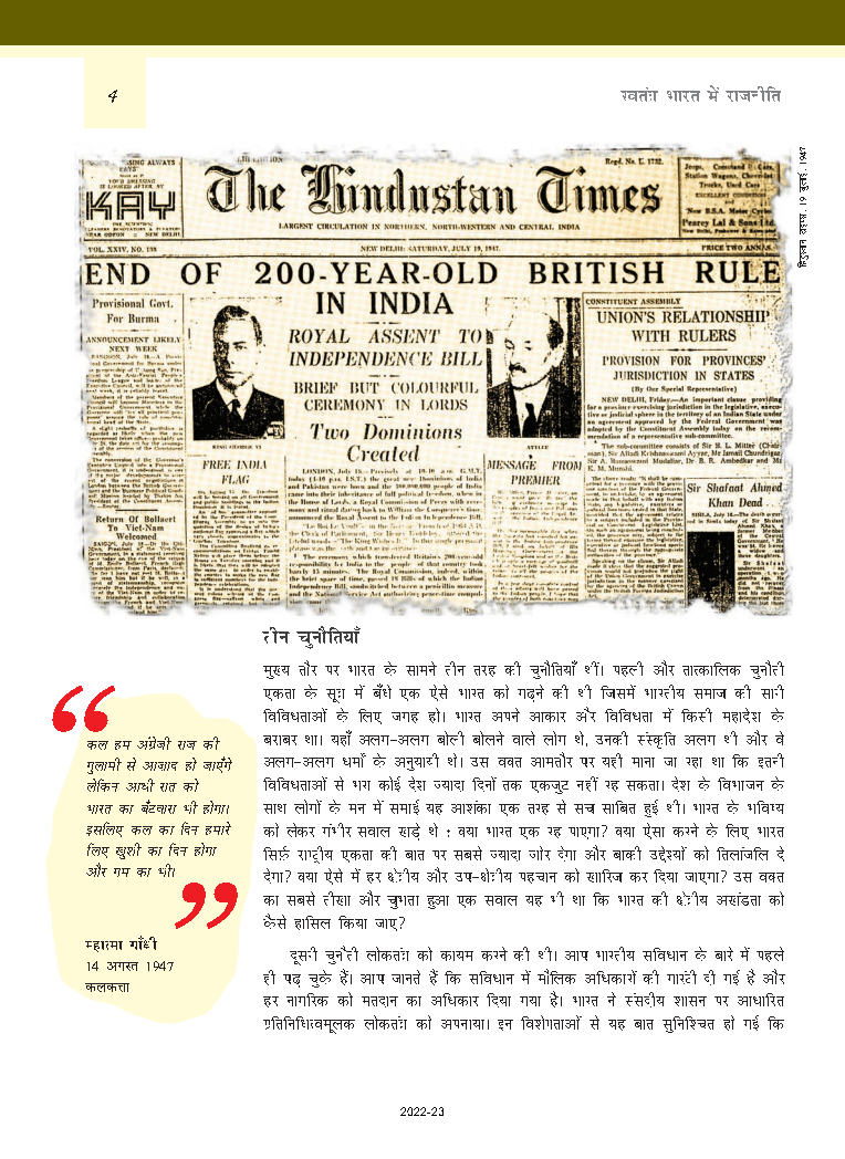 New NCERT Book Political Science- Politics In India Since Independenc(स्वतंत्र भारत में राजनीति) Class-XII (Original Book) Hindi Medium