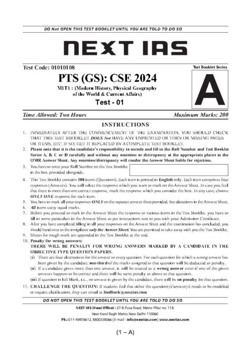 Test – 01 Modern History, Physical Geography of the World & Current Affairs)