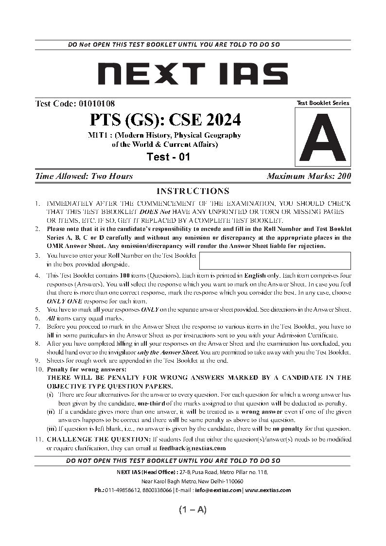 Next Ias General Studies Prelims Test Series 01 To 27 Questions With Solutions English Medium 2024