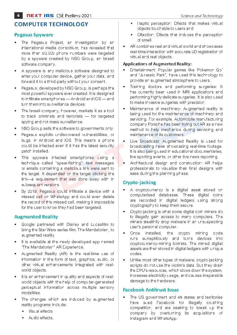Next Ias Monthly Current Affair For Prelims (CAP) Science and Technology 2021 Printed Notes English Medium