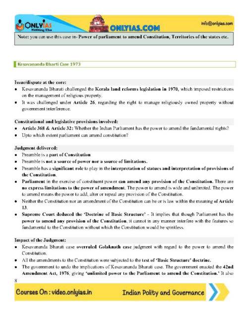 Only IAS Important Judgement And Their Significance GS Paper-II Foundation English Medium Printed Notes 2022