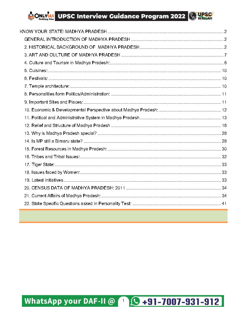 Only Ias Interview Guidance Program Know Your State Madhya Pradesh Printed Notes English Medium 2022