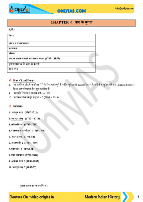 Only IAS Modern History (आधुनिक भारतीय इतिहास) GS Paper-I Foundation Hindi Medium Printed Notes 2022