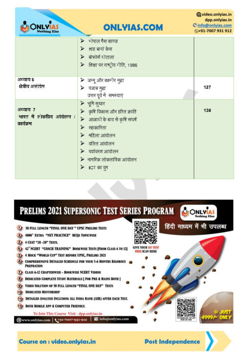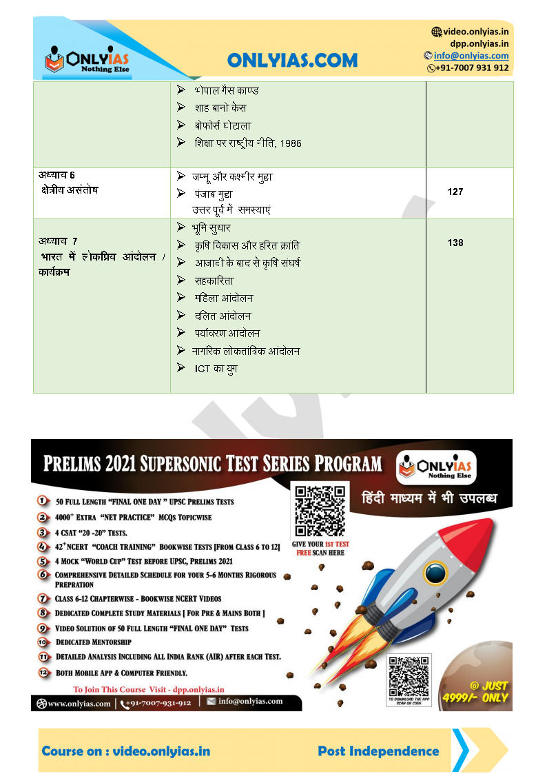 Only IAS Post Independence India(आजादी के बाद का भारत) GS Paper-I Foundation Hindi Medium Printed Notes 2022