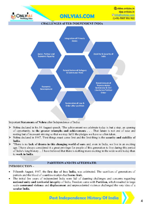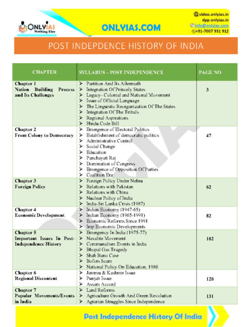 Only IAS Post Independence India GS Paper-I Foundation English Medium Printed Notes 2023