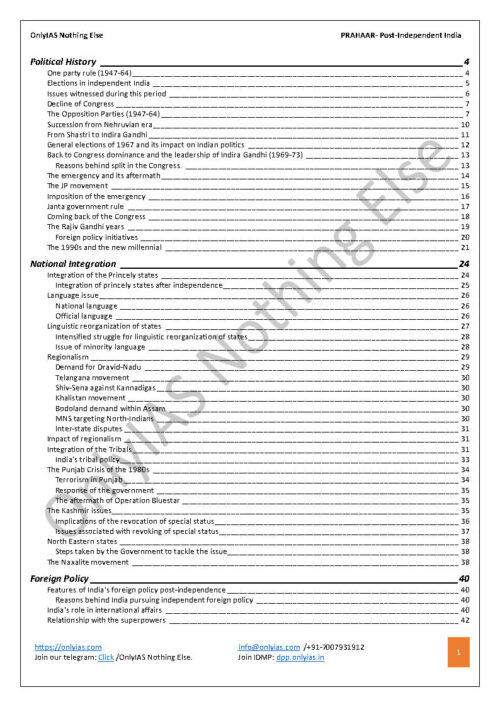 Only IAS Prahaar GS Paper-I Post Independence India English Medium 2021