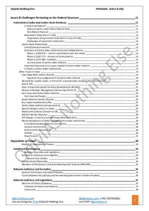 Only IAS Prahaar GS Paper-II Indian Polity English Medium 2021