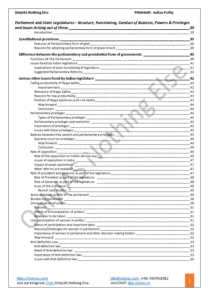 2.PARLIAMENT AND STATE LEGISLATURES—STRUCTURE, FUNCTIONING, CONDUCT OF BUSINESS, POWERS & PRIVILEGES AND ISSUES ARISING OUT OF THESE