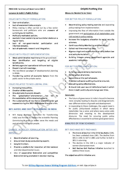 Only IAS-Prahaar GS Paper-II Summary Indian Governance English Medium 2021