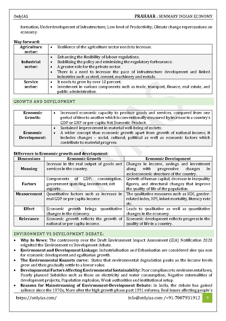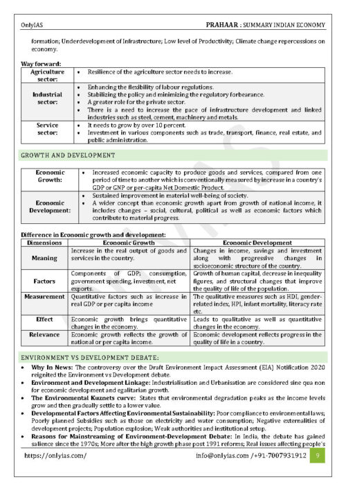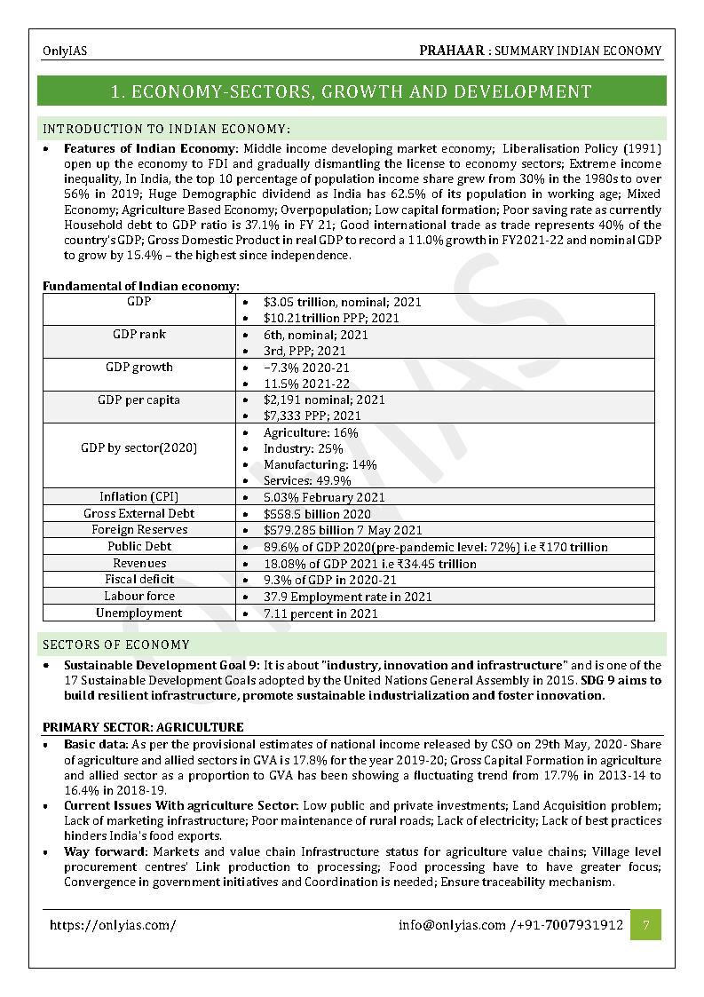 Only IAS Prahaar GS Paper-III Indian Economy Summary English Medium 2021