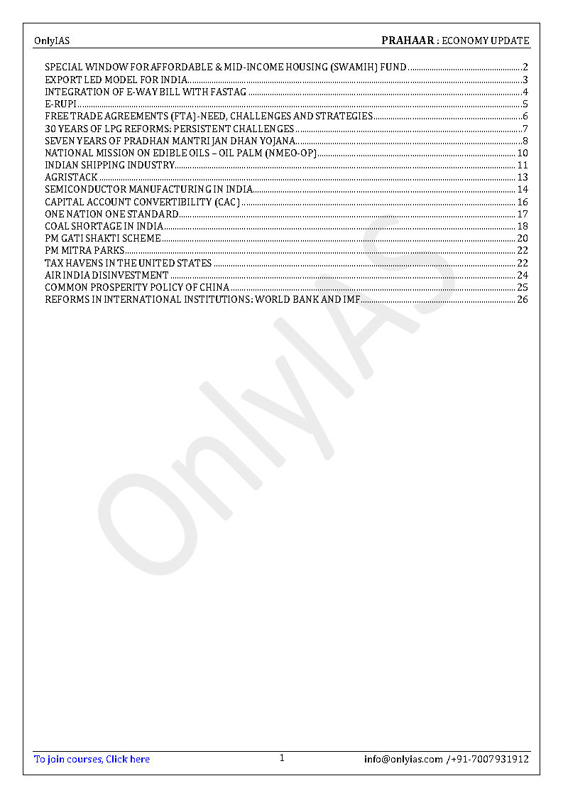Only IAS Prahaar GS Paper-III Indian Economy UPDATED (April -2021 To November – 2021) English Medium 2021