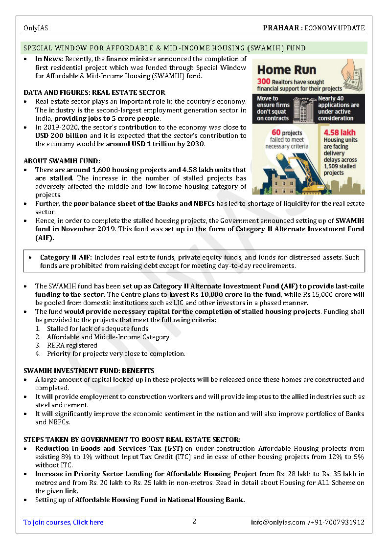 •SPECIAL WINDOW FOR AFFORDABLE & MID-INCOME HOUSING (SWAMIH) FUND.