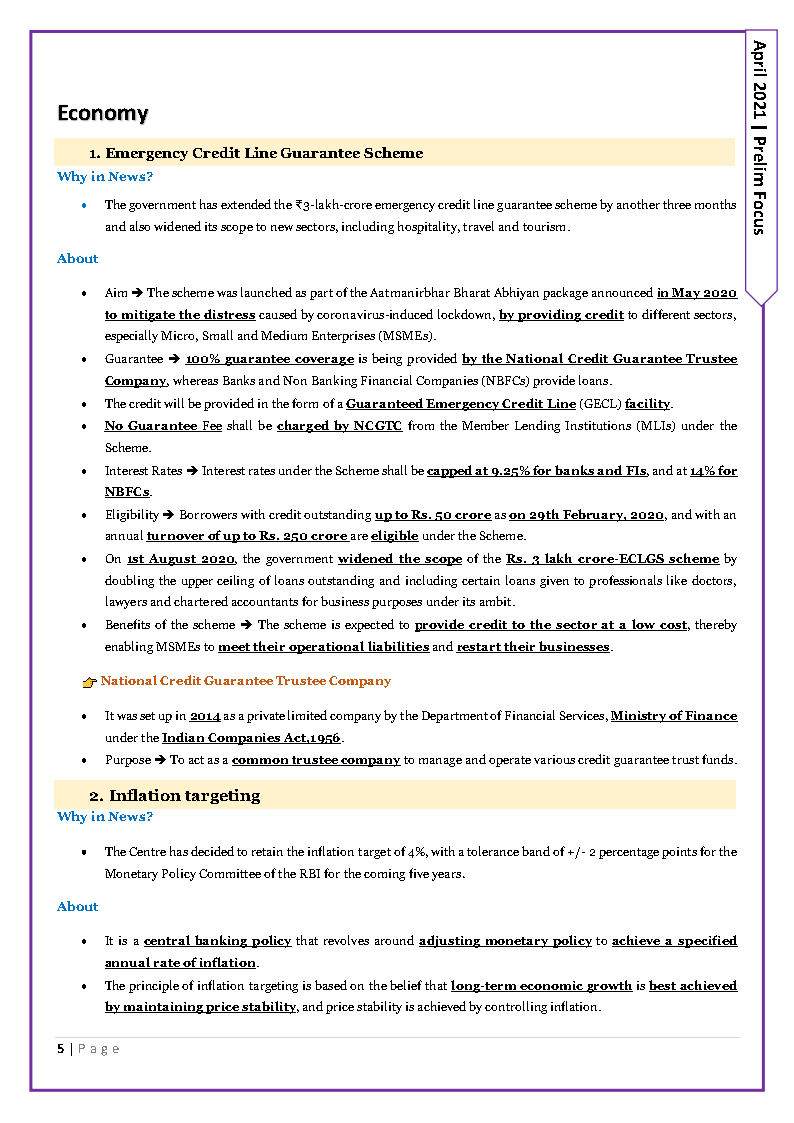 Only Ias Prelims Focus Current Affair April 2021 English Medium Printed Notes