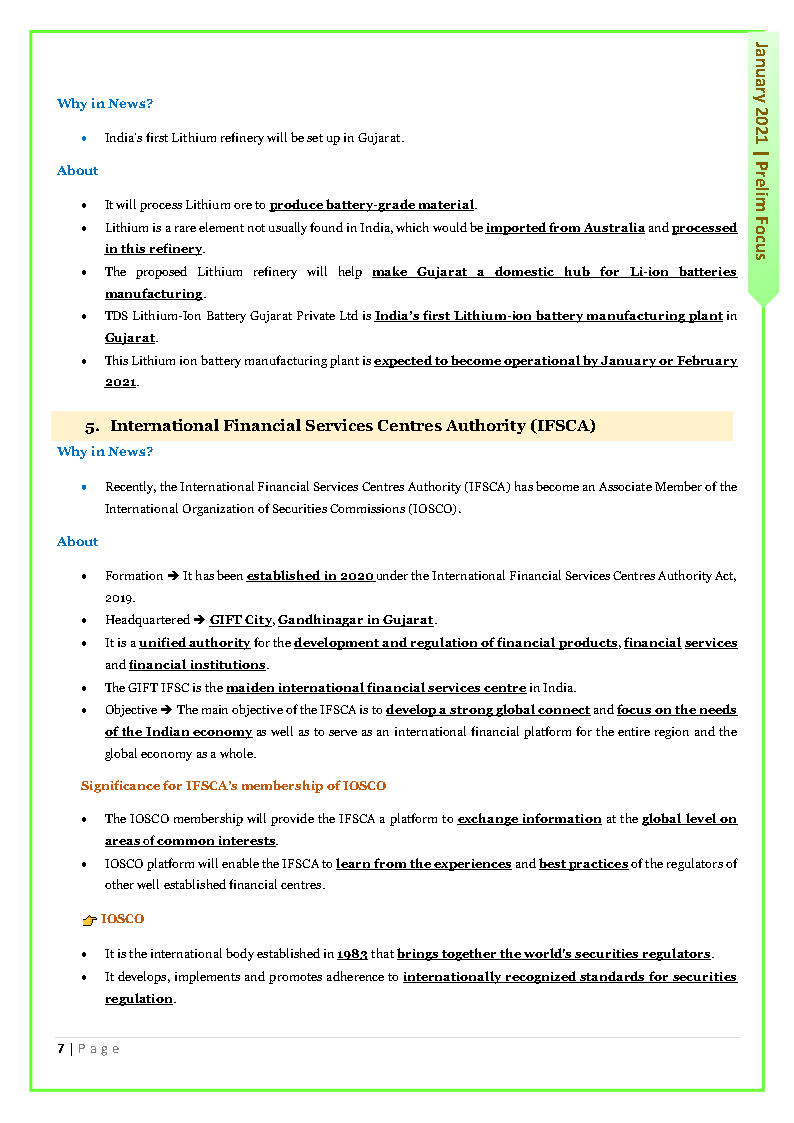 Only Ias Prelims Focus Current Affair January 2021 English Medium Printed Notes