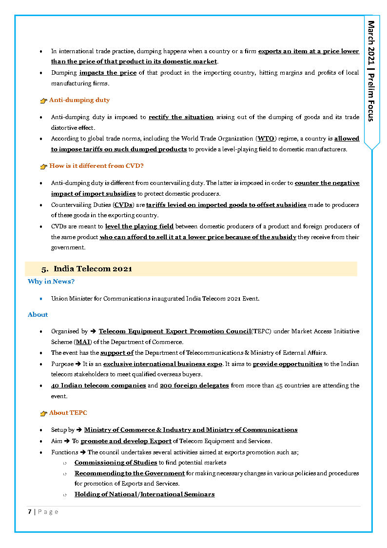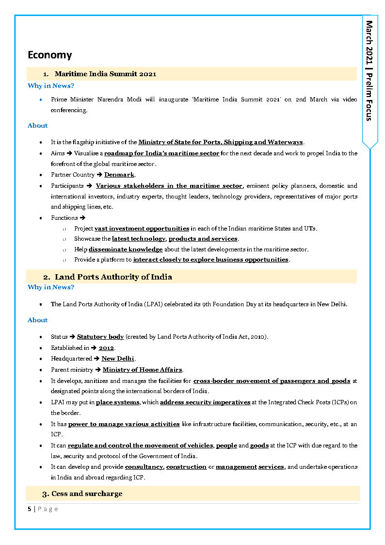 Only Ias Prelims Focus Current Affair March 2021 English Medium Printed Notes