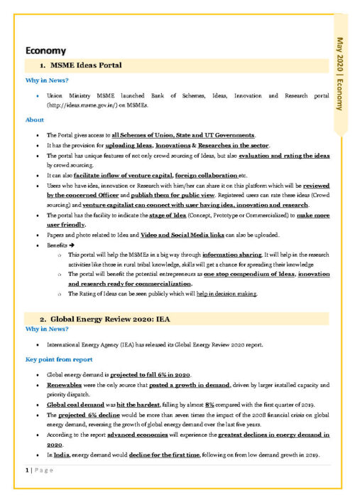 Only Ias Prelims Focus Current Affair May 2020 English Medium Printed Notes