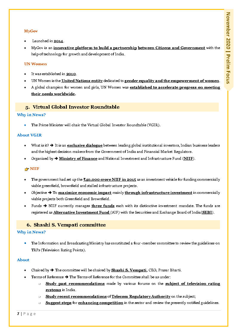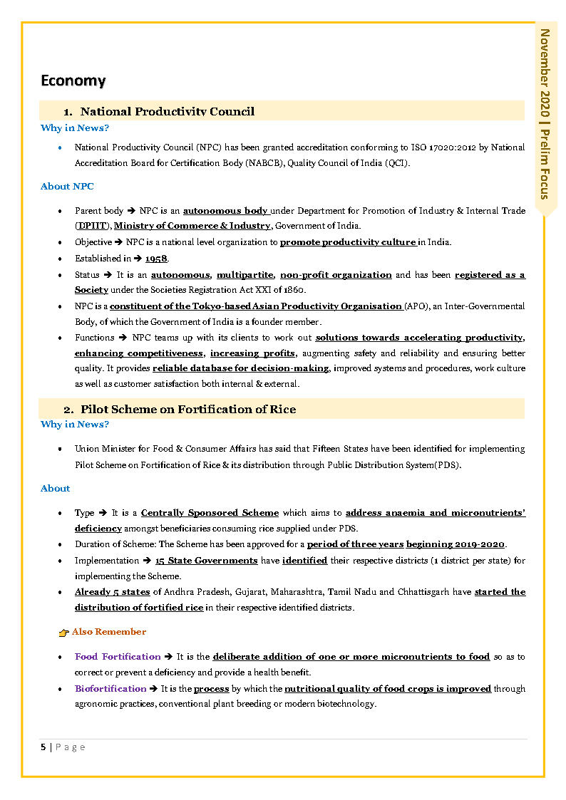 Only Ias Prelims Focus Current Affair November 2020 English Medium Printed Notes