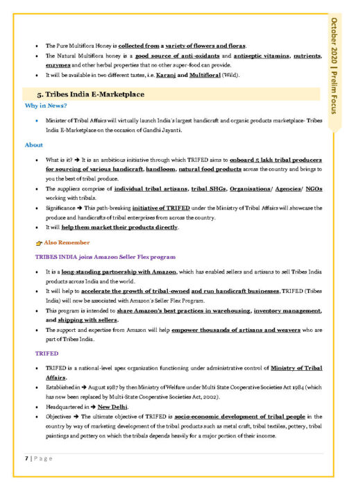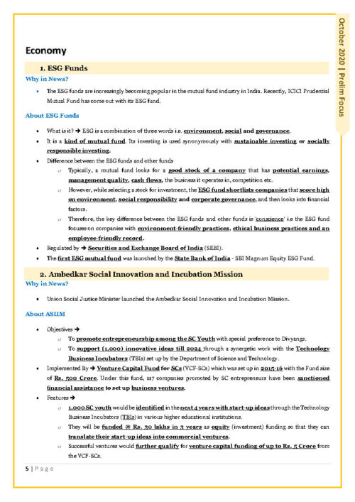 Only Ias Prelims Focus Current Affair October 2020 English Medium Printed Notes