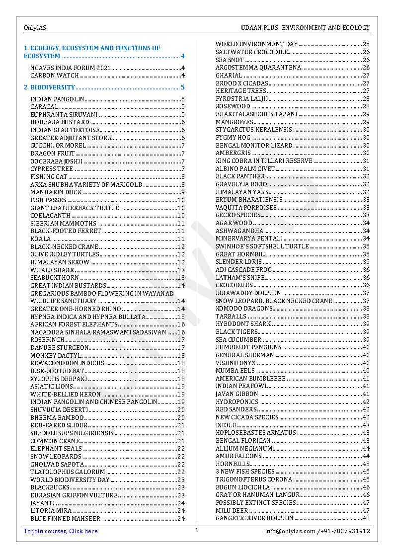 Only IAS Udaan Plus 500 Environment & Ecology Current Affairs Jan 2021 to Jan 2022 For Pre-2022 English Medium