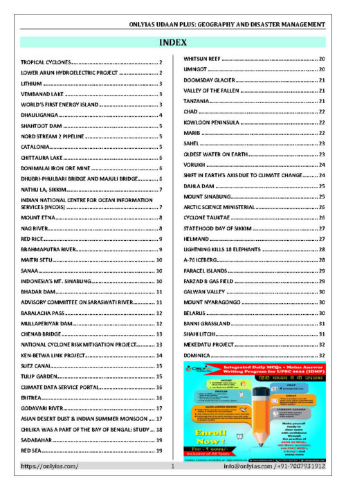 Only IAS Udaan Plus 500 Geography & Disaster Management Current Affairs Feb 2021 To May 2021 For Pre 2021 English Medium