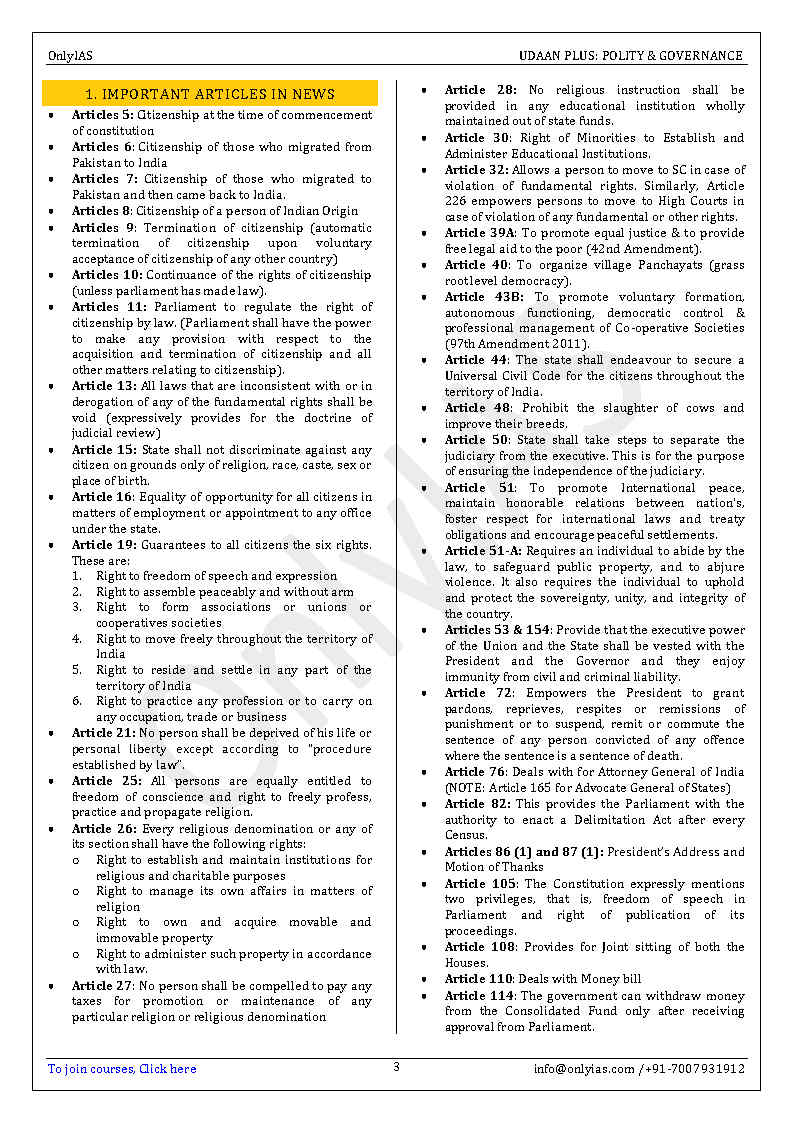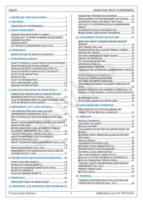 Only IAS Udaan Plus 500 Polity & Governance Current Affairs Jan 2021 to Jan 2022 For Pre-2022 English Medium