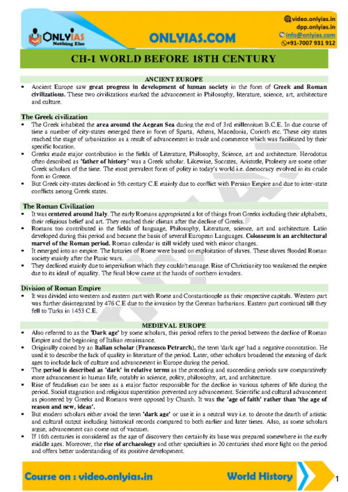 1. World before 18th Century