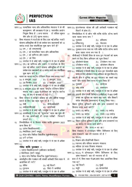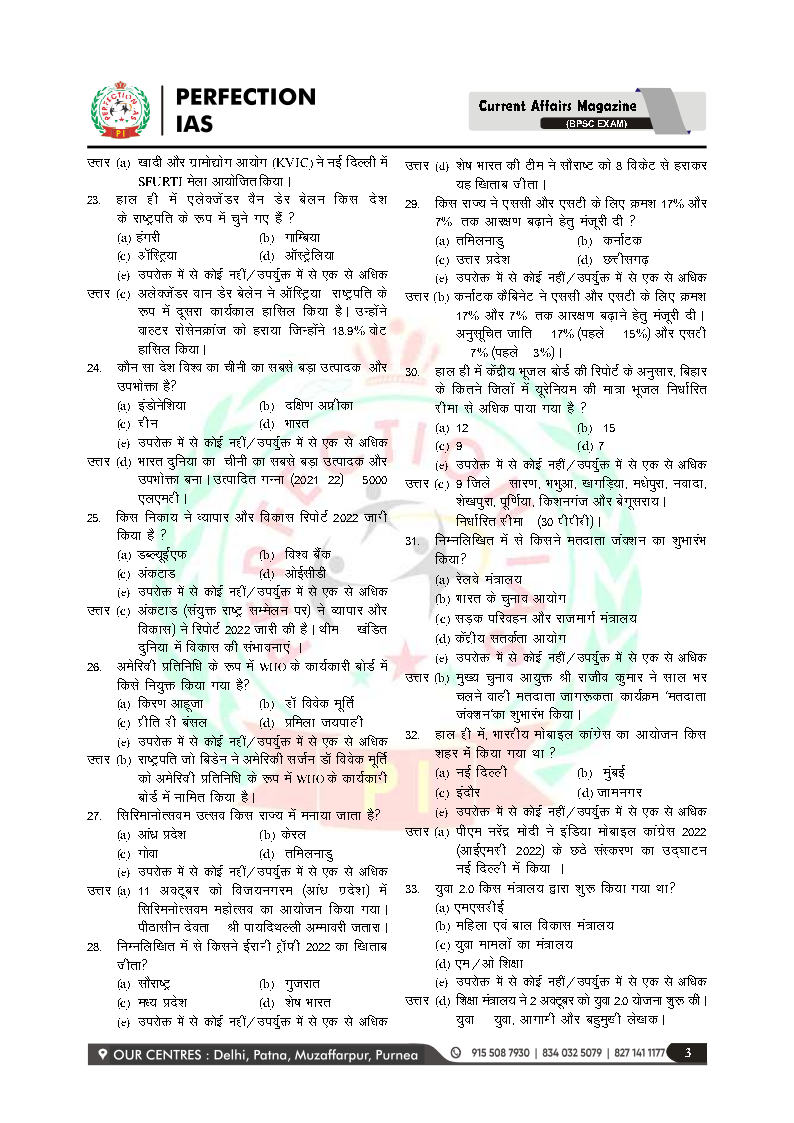 Perfection IAS (समसामयिकी) BPSC Current Affairs MCQ (अक्टूबर 2022-जनवरी 2023) October 2022-January 2023 For BPSC Prelims Exams Hindi Medium Printed Notes