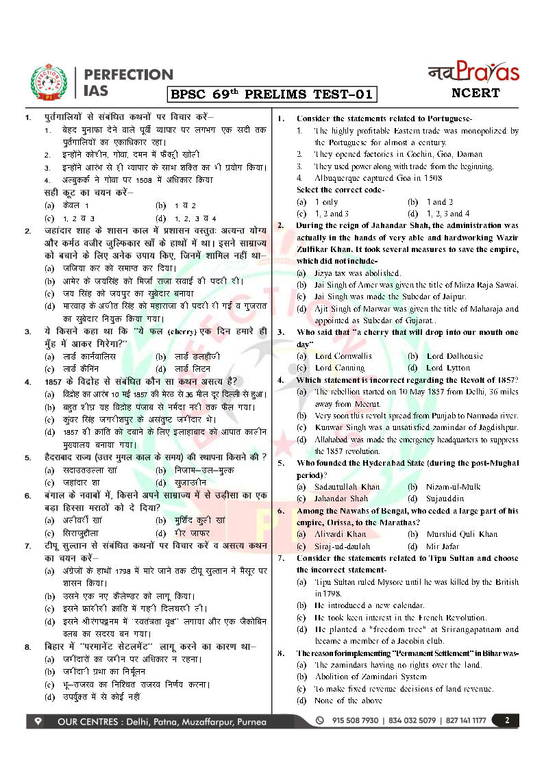Perfection Ias 69th BPSC Prelims Test Series 11 To 15 Bilingual 2023