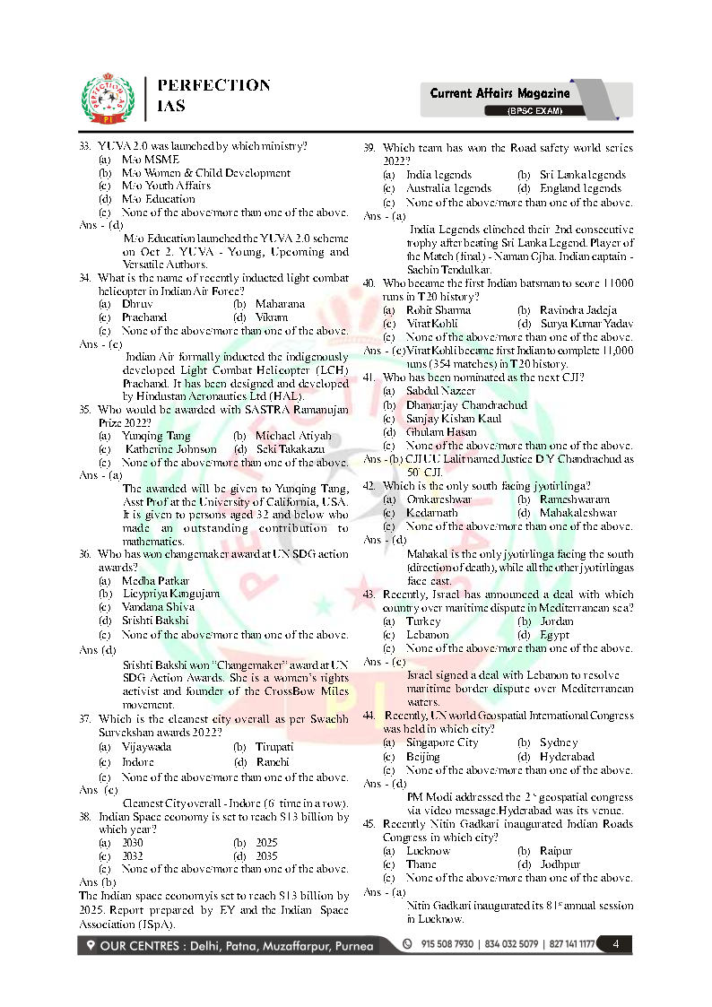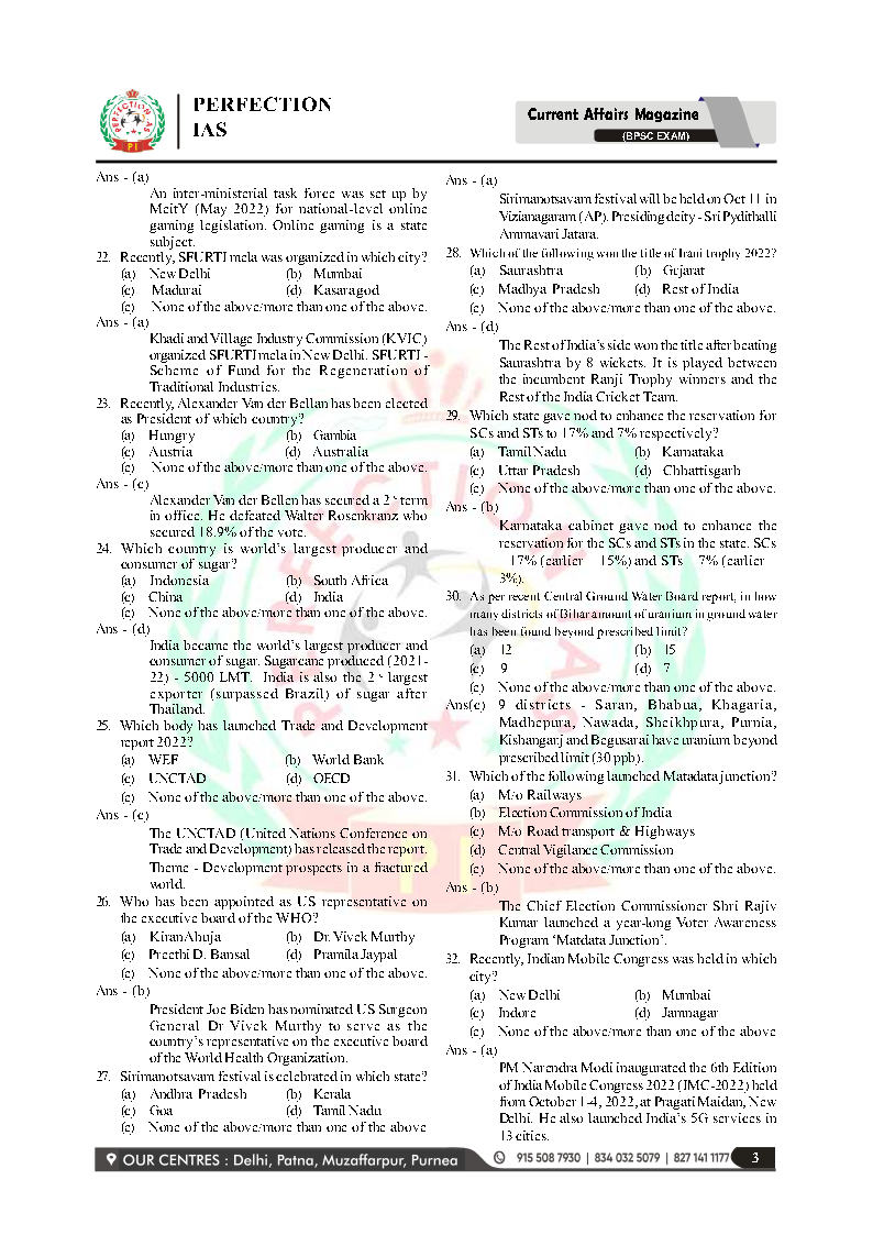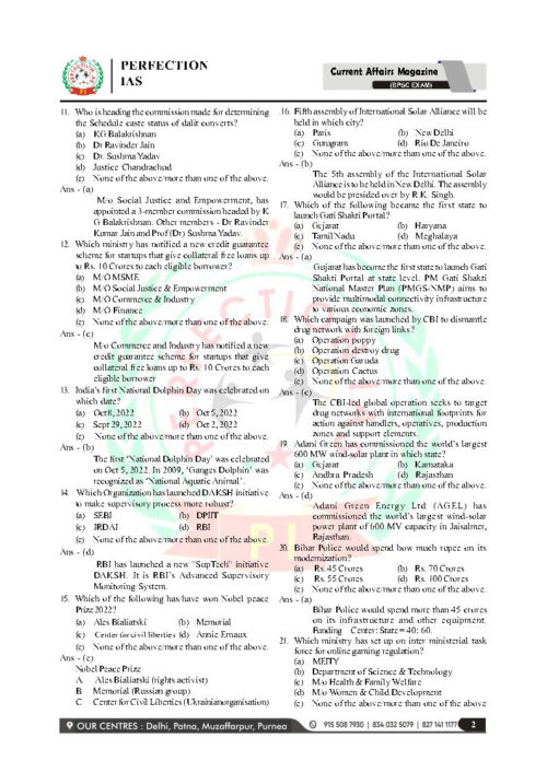 Perfection IAS Current Affairs MCQ October 2022- January 2023 For BPSC Prelims Exams English Medium Printed Notes