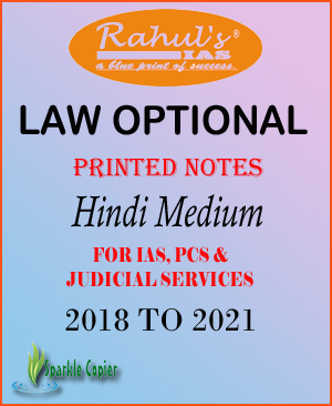 LAW Printed notes by Rahul IAS for IAS, PCS and JUDICIAL services.Rahul’s IAS as a coaching institute for IAS and Judicial services exams was formally established in the year 2002 by Rahul sir. The vision behind the endeavour was, and has been, to provide genuine support to the students preparing for these competitive exams. The institute offers class room courses and correspondence material only for law as a subject for IAS and judicial exams. Material we are providing is the same as given in the classroom and correspondent coaching. Law printed notes by rahul IAS is the best material available to prepare for law optional.