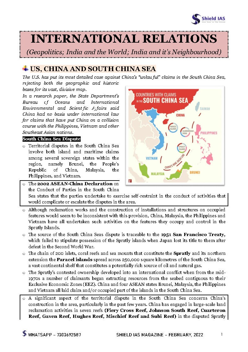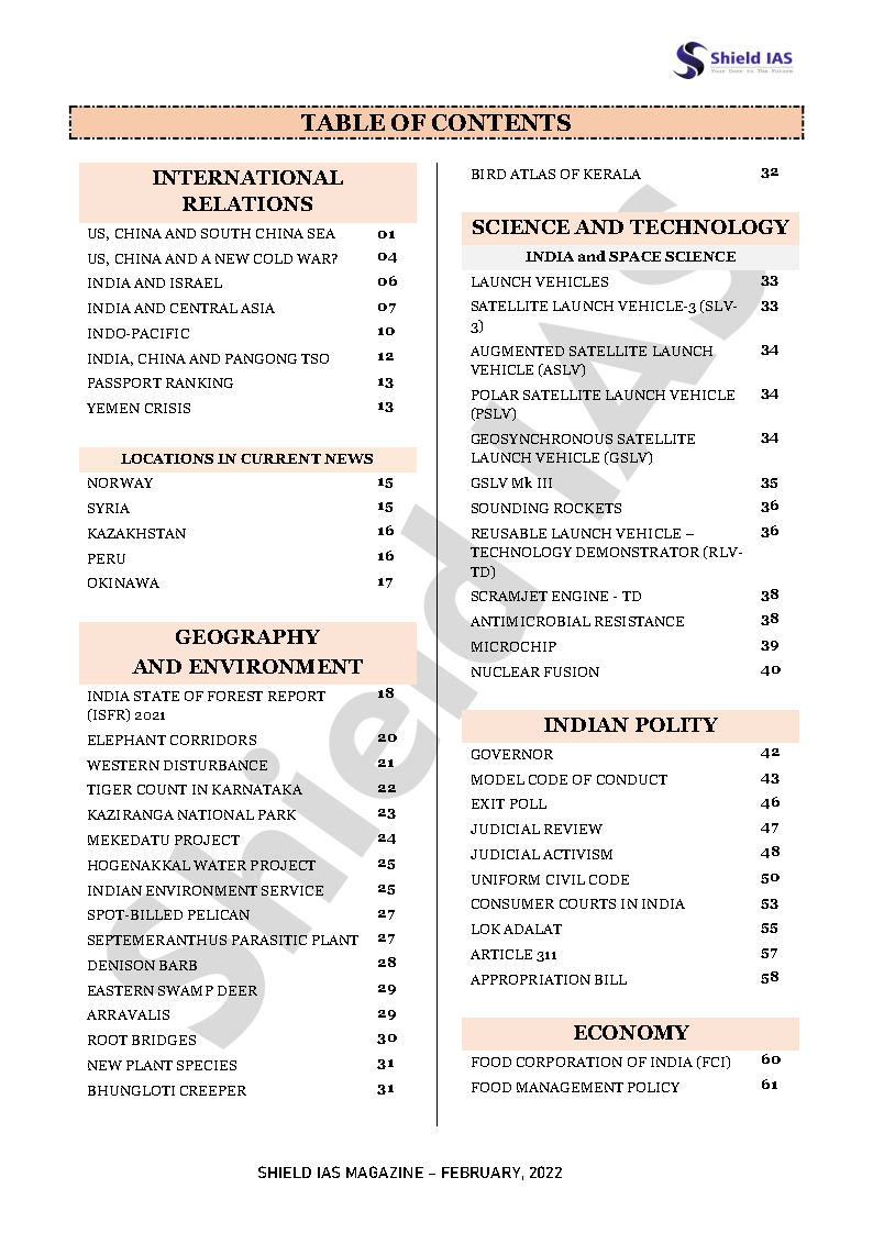 Shield IAS Monthly Current Affairs & Issues Update February 2022 English Medium