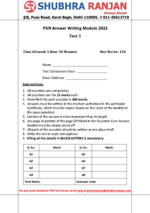 Shubhra Ranjan IAS Political Science Optional Test Series Answers Booklet 01 to 17 2022 Eng Medium