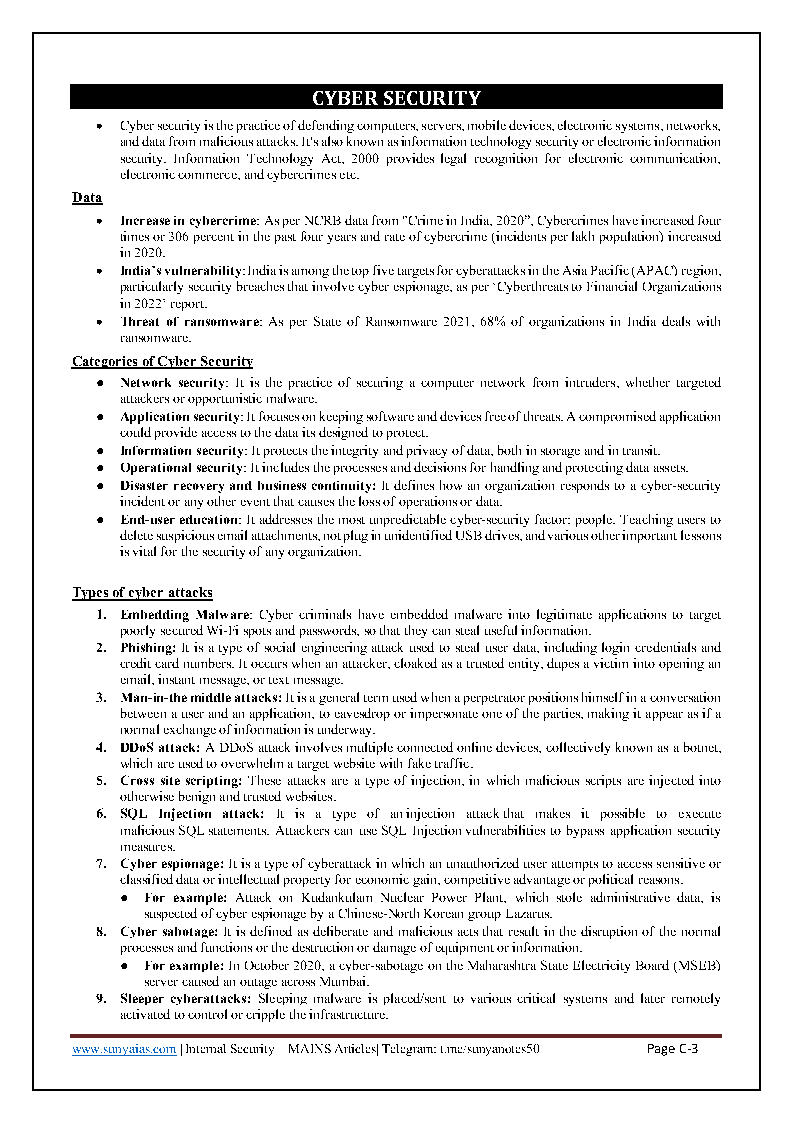 Sunya IAS Current Affairs Articles Internal Security Mains 2022-23 English Medium (Xerox)