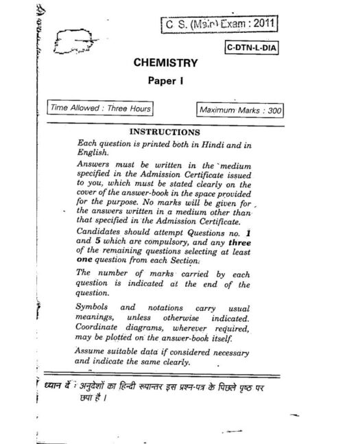 UPSC Mains Optional Chemistry Previous Years Questions Papers I+II Bilingual 2011-24