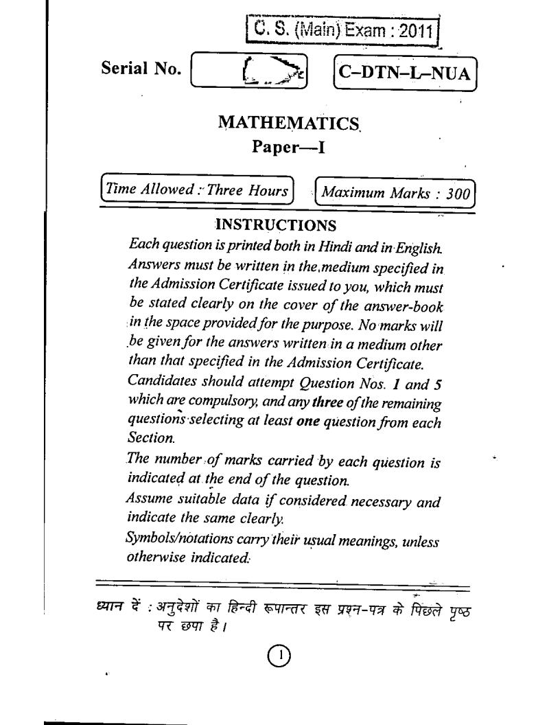 UPSC Mains Optional Mathematics Previous Years Questions Papers I+II Bilingual 2011-24