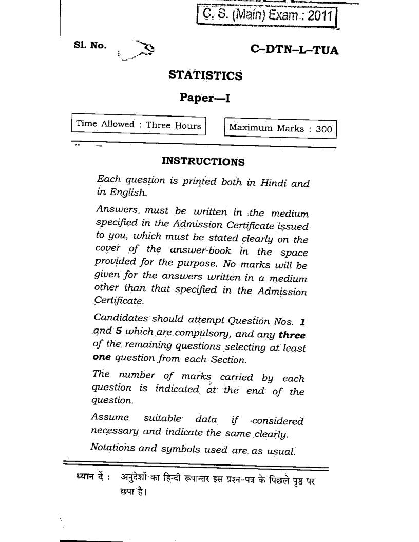UPSC Mains Optional Statistics Previous Years Questions Papers I+II Bilingual 2011-24