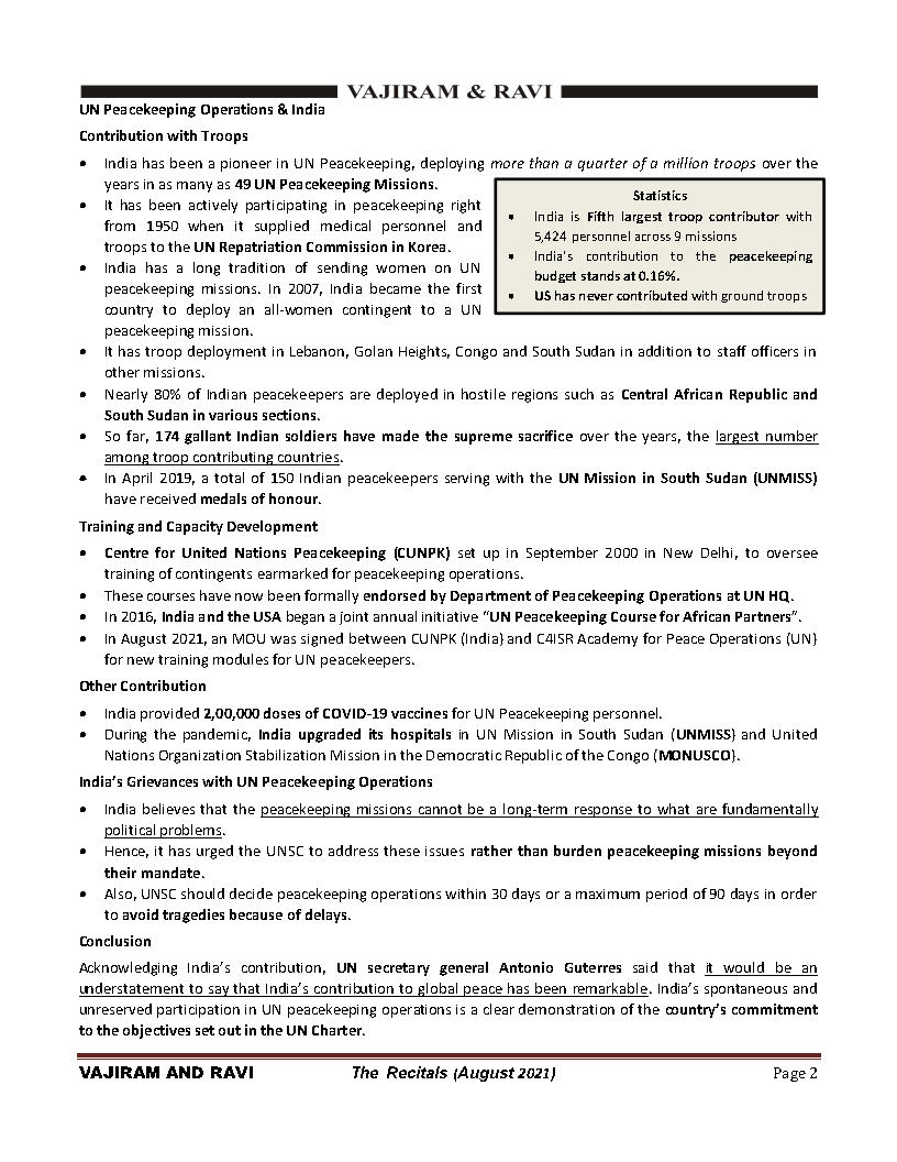 Vajiram And Ravi The Recitals Current Affairs August 2021 English Medium