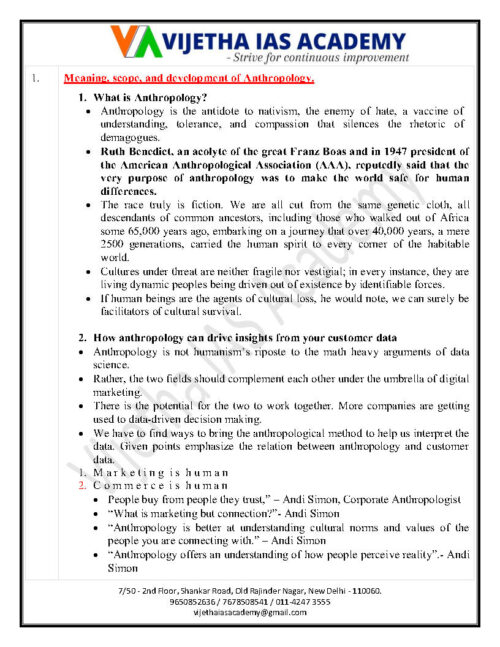 Vijetha Ias Academy Anthropology Case Studies Part 1+2 Printed Notes 2022 English Medium